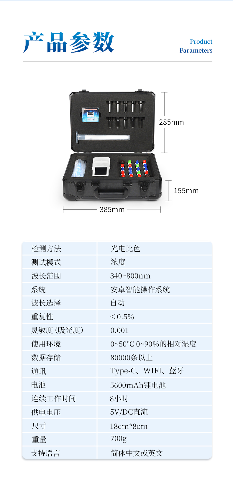 水产养殖检测仪是一款适用于工业污水、水产养殖、河流监测、游泳场馆等领域的检测仪,配合快速显色检测试剂,可“快速、简单、准确、稳定”进行测量,拥有精美的外观造型,简单的操作界面,准确的检测系统,帮助用户获得精细的数据,可更准确、有效的分析水体状况,提前预防养殖风险,及时避免损失。