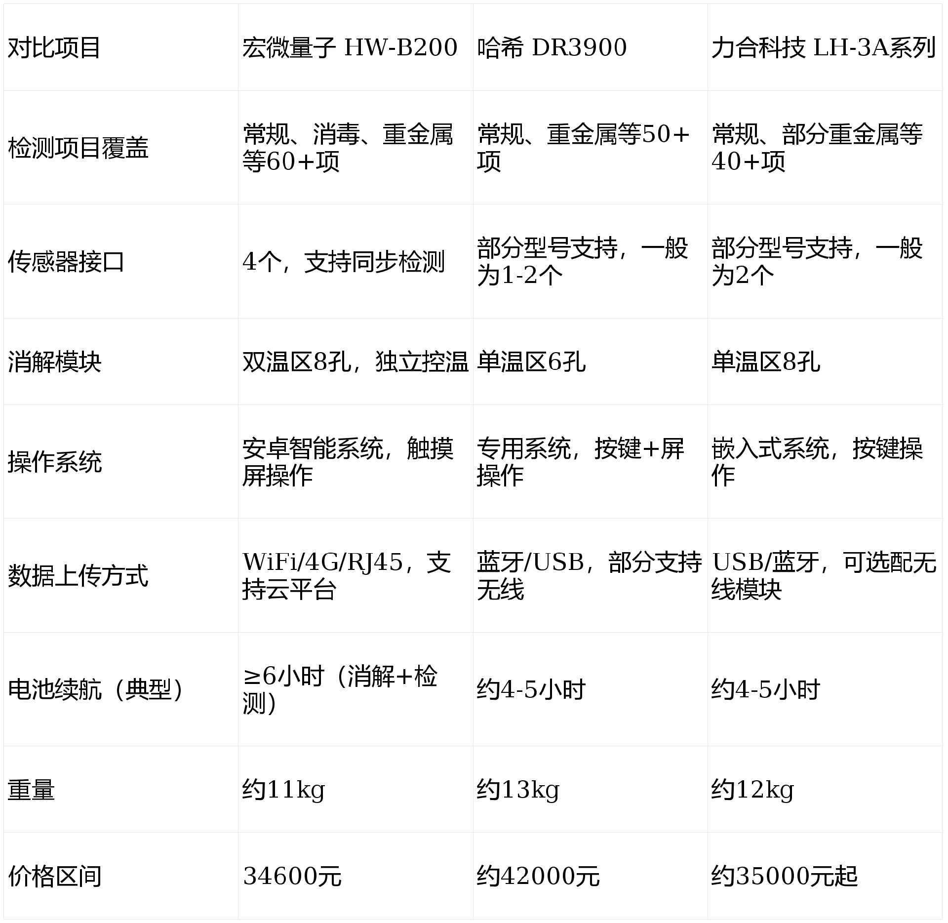 从上表可以看出,宏微量子HW-B200在传感器扩展能力、消解效率、系统智能性、续航与轻量化方面具有一定优势。