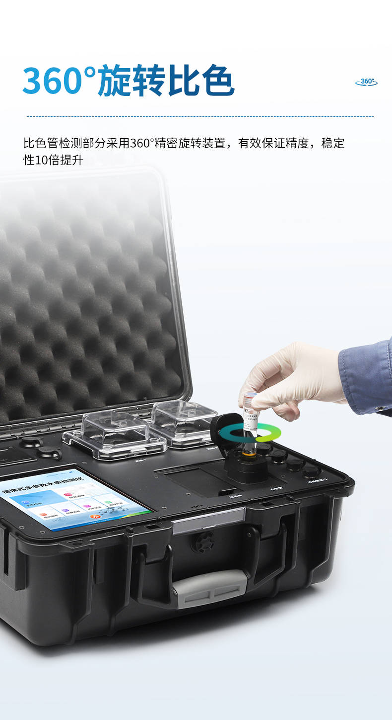 宏微量子系列产品采用光纤检测技术与进口光源,光学稳定性达≤±0.001Abs/20分钟,重复性<0.5%,与哈希、力合科技等品牌同类产品处于同一精度水平。其双比色系统与360°旋转装置进一步提升了检测的一致性与可靠性。