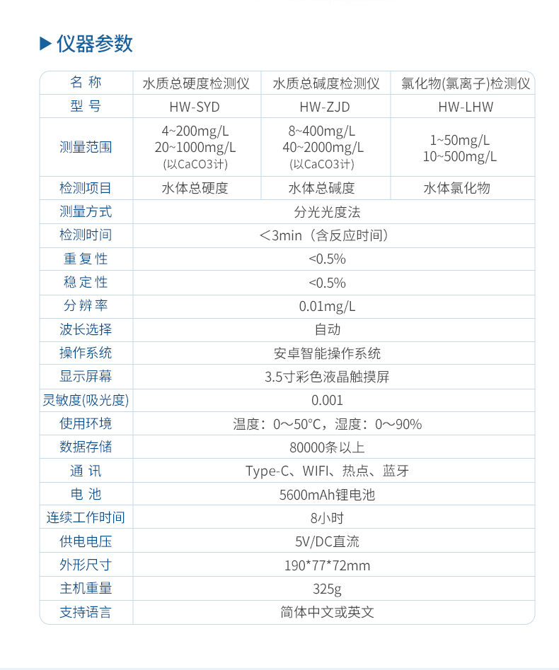 【产品简介】检测项目:水体氯化物测量范围:1~50mg/L,10~500mg/L;